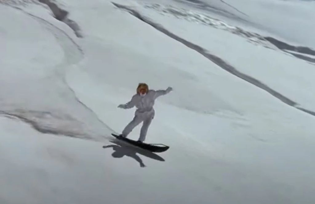 For many ordinary punters, snowboarding was invented that same year (1985) by James Bond. As you may recall, Bond had to race downhill amidst some spectacularly poor shooting by dozens of Russian pursuers, and – crucially – you can see him shifting from two skis to one ski half-way through this clip from A View To a Kill. Could snowboarding under fire become a new Winter OIympics sport?
